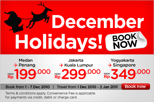 AirAsia Ticket Promo for December Holidays, Trip for Happy Christmas and New Year 2011. Boarding now :