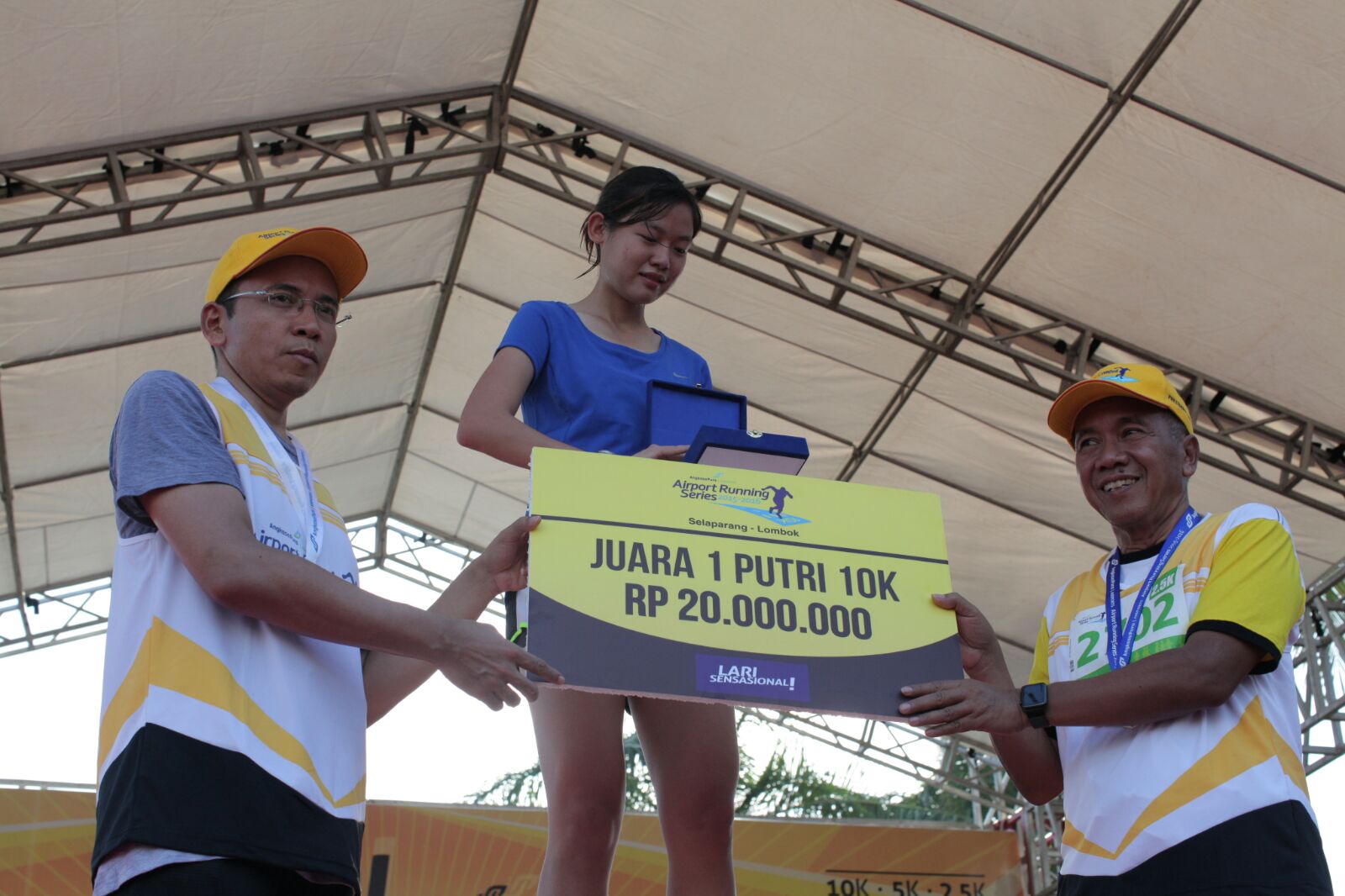 Juara I kategori 10 kilometer putra “Airport Running Series 2015-2016” di Lombok kali ini diraih oleh Ridwan. Diikuti Hamdan dan Abdul Haris. Sedangkan di kategori 10 kilometer putri, juaranya adalah Dwi Setiadi Abigail, disusul oleh Odekta Vina dan Raquel Pereira.