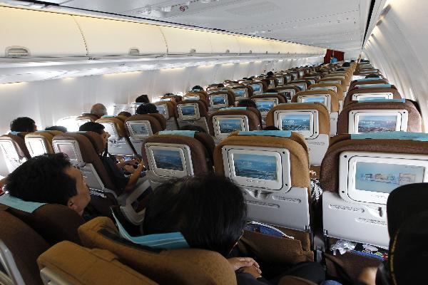 - Amati pintu darurat yang ada apakah berada didepan atau dibelakang anda, kemudian hitung perkiraan berapa langkah jarak yang ditempuh. Hal ini sangat berguna apabila pesawat mengalami keadaan darurat.